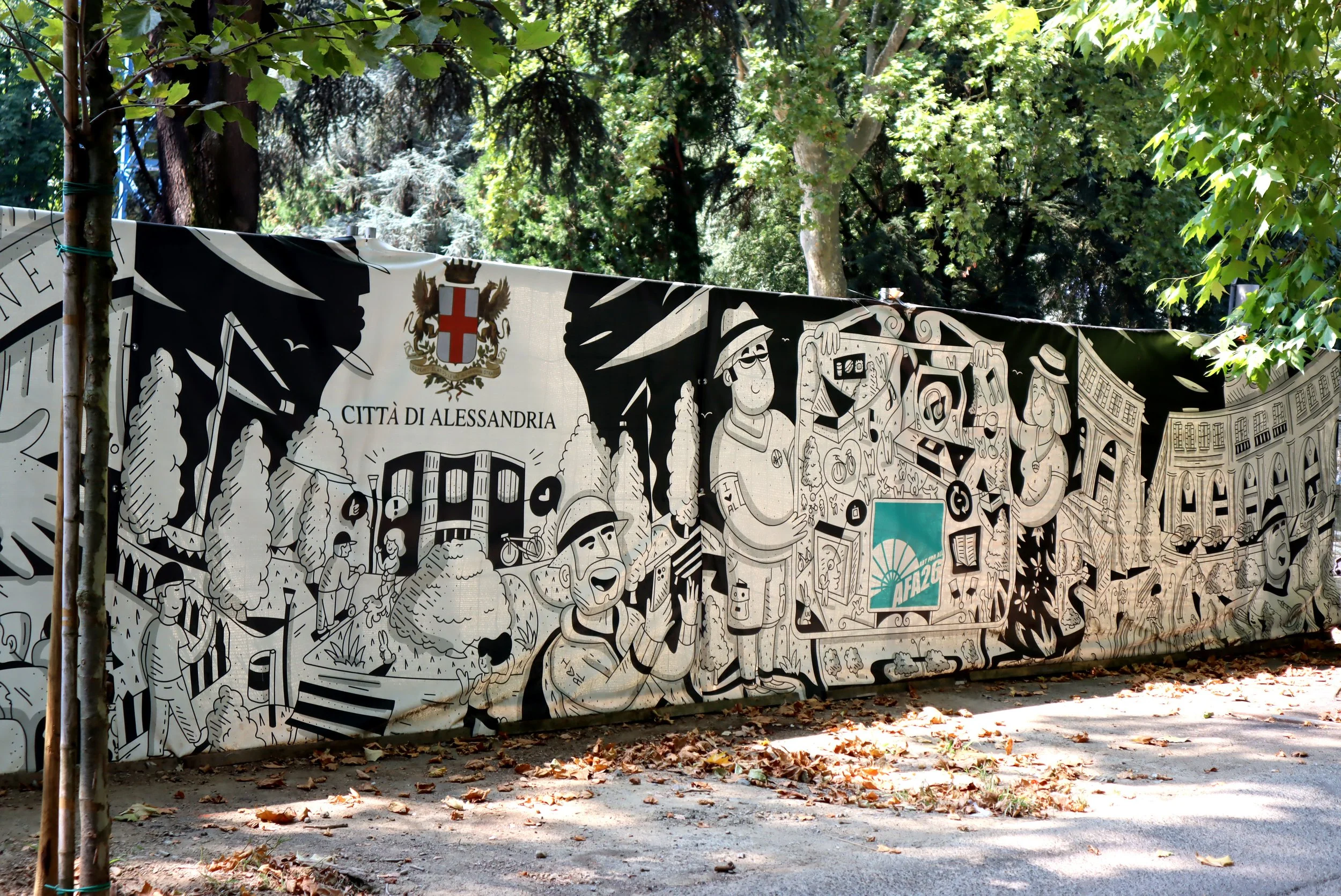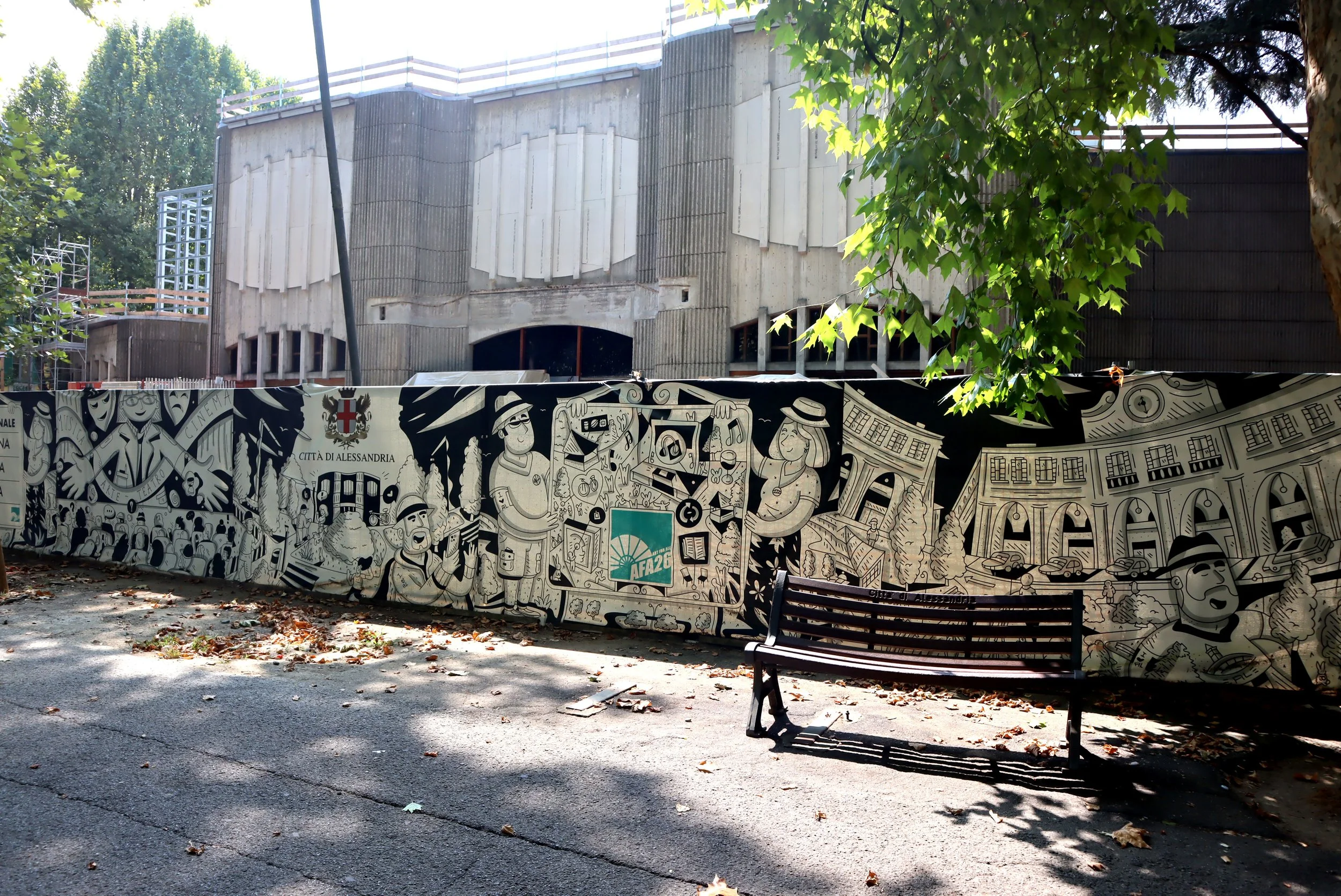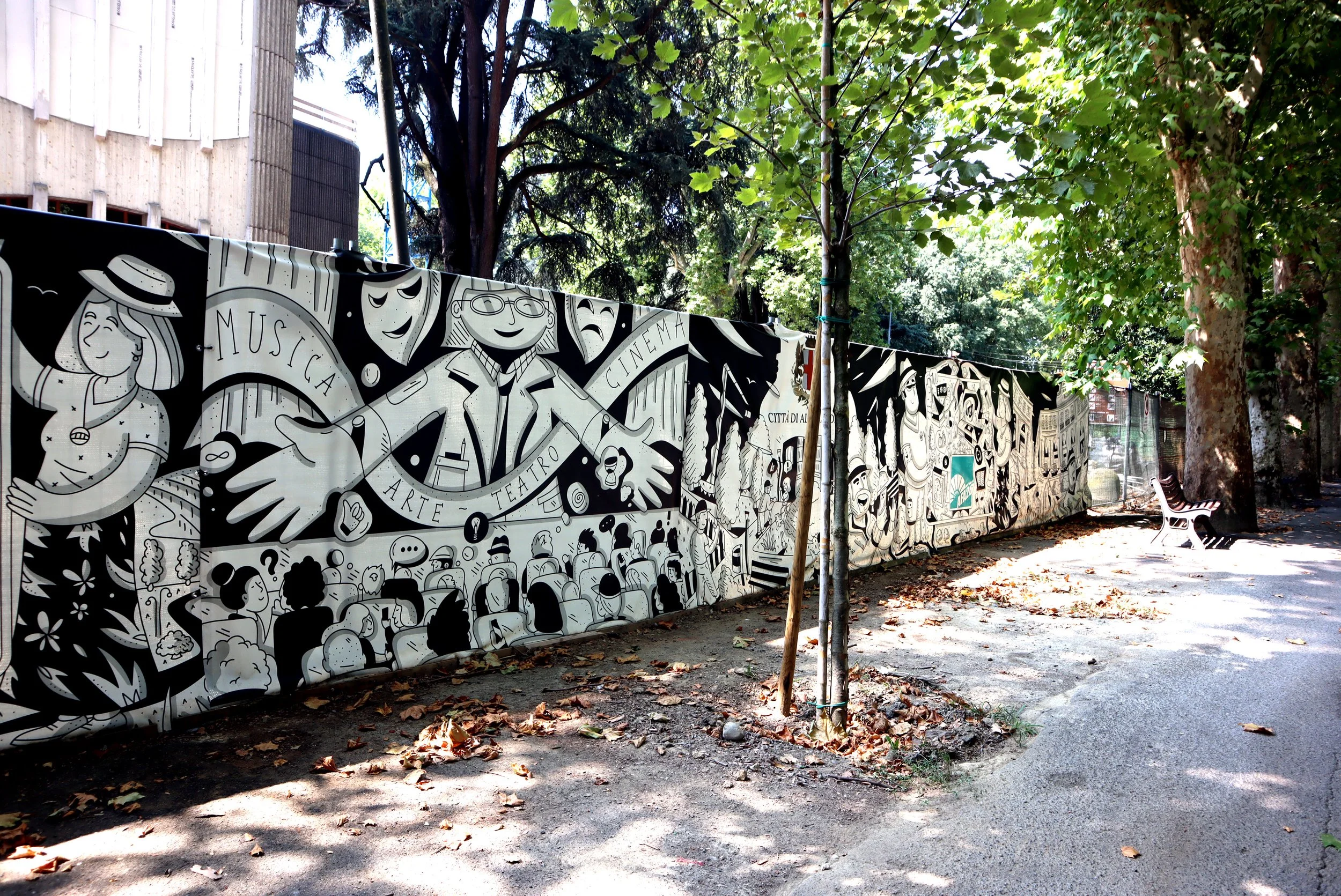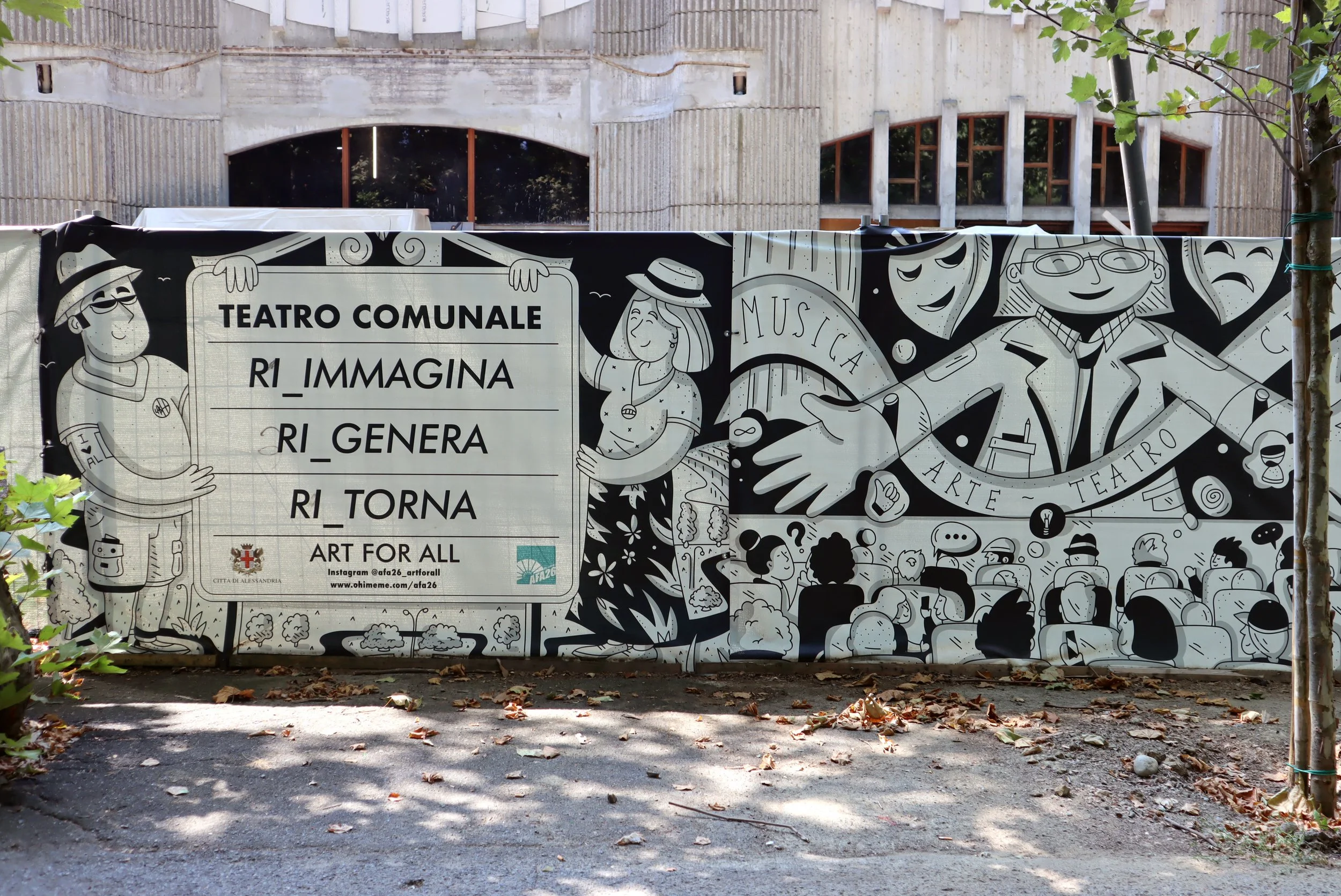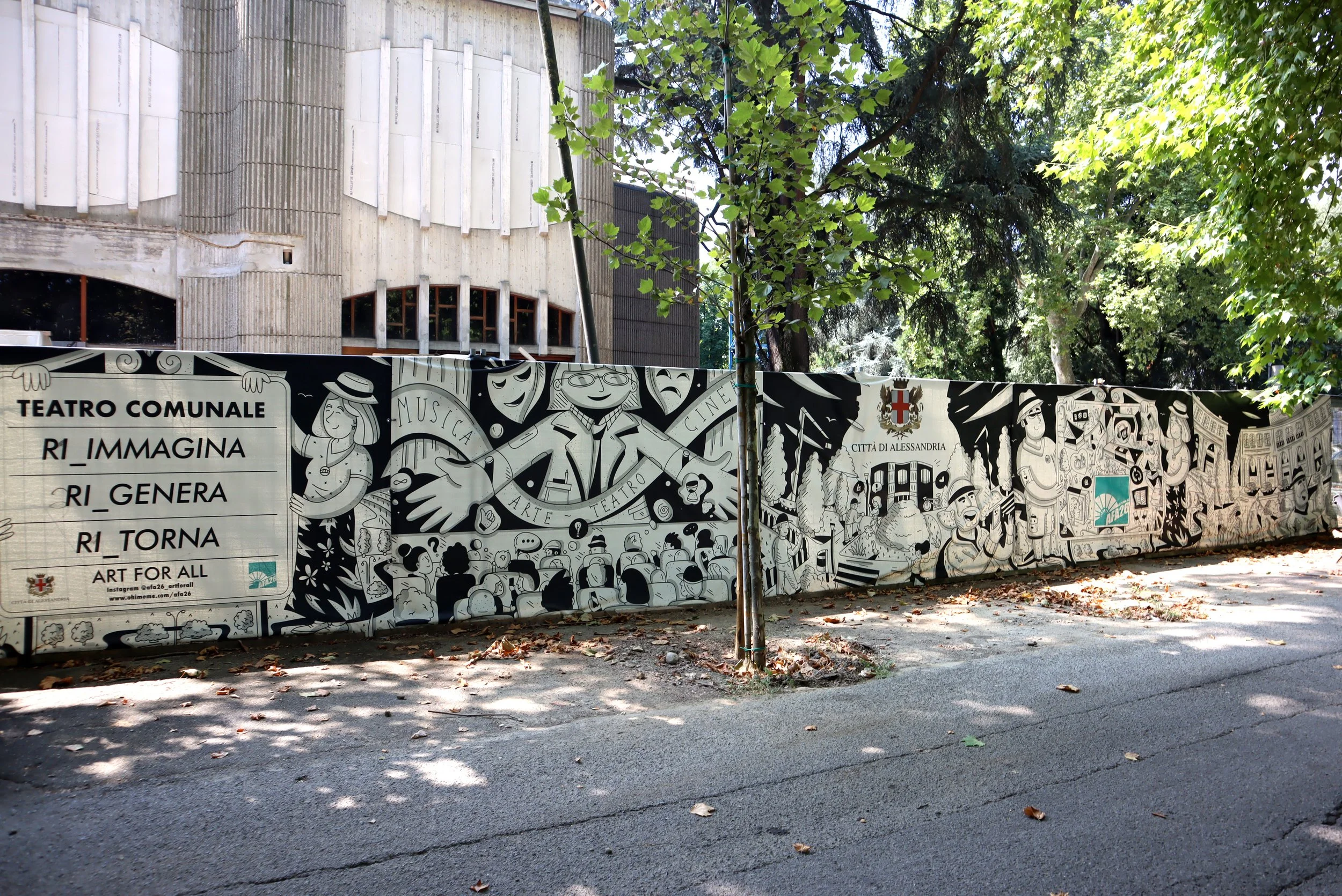 Construction site cover graphics for the municipality of Alessandria, created on the occasion of the start of the renovation works of the Teatro Comunale di Alessandria, closed more than 10 years ago.